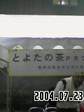 <煌びやかな特設舞台> <鶏の格好でコケッコー> <とよたの茶の試飲コーナー>