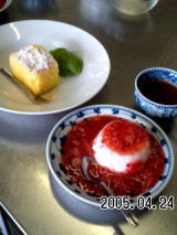 7、ブラマンジェをゼリー型から器に出して苺のソースをたっぷりかけてできあがり♪